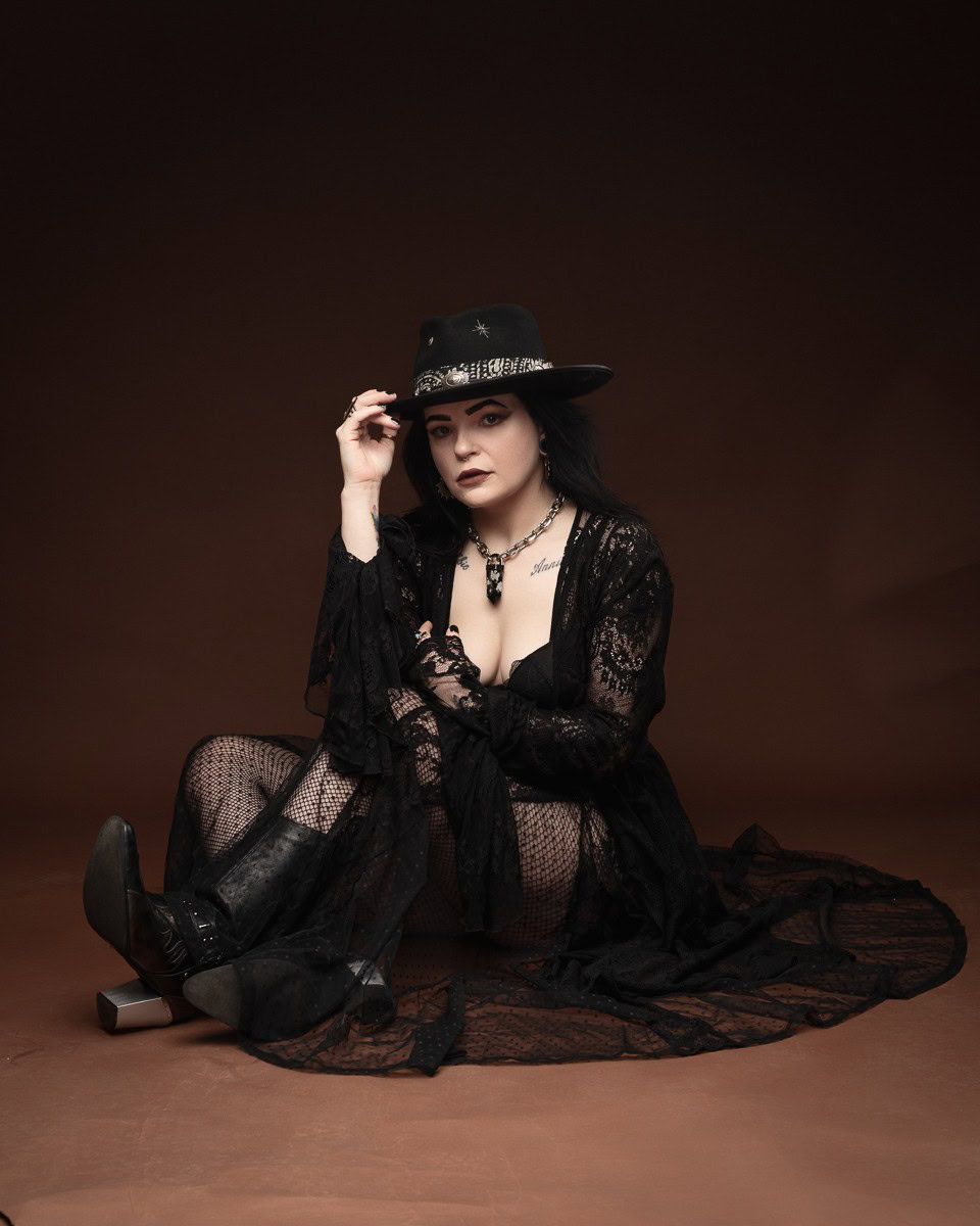 This outfit proves that western wear and gothic romance aren”t opposing forces-they”re complementary styles that merge beautifully when paired with confidence and dramatic flair.