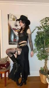 This ensemble works perfectly for casual outings, themed events, or anyone wanting to make a confident fashion statement that honors both the dark romance and western heritage of the goth cowgirl trend.
