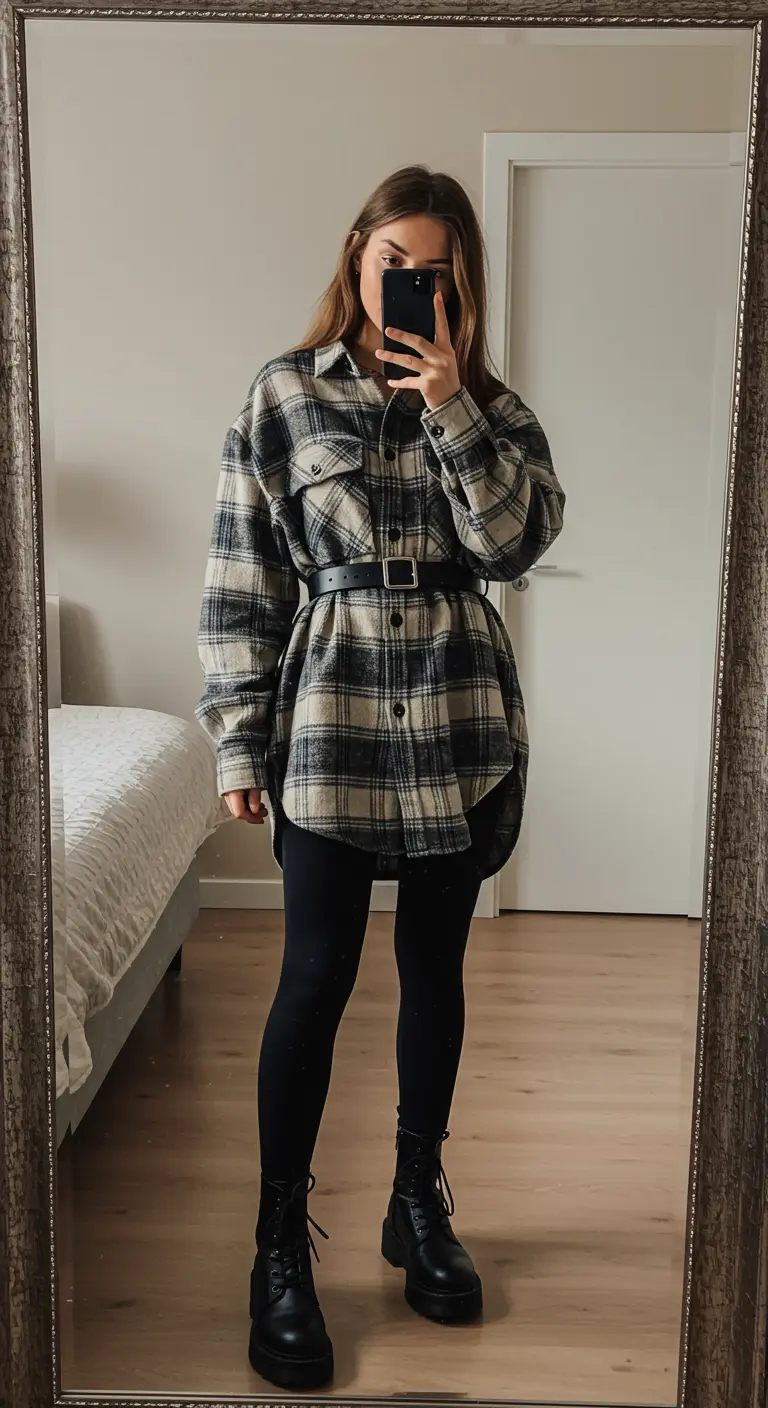 Turn an oversized plaid shirt into a dress for ultimate grunge vibes.