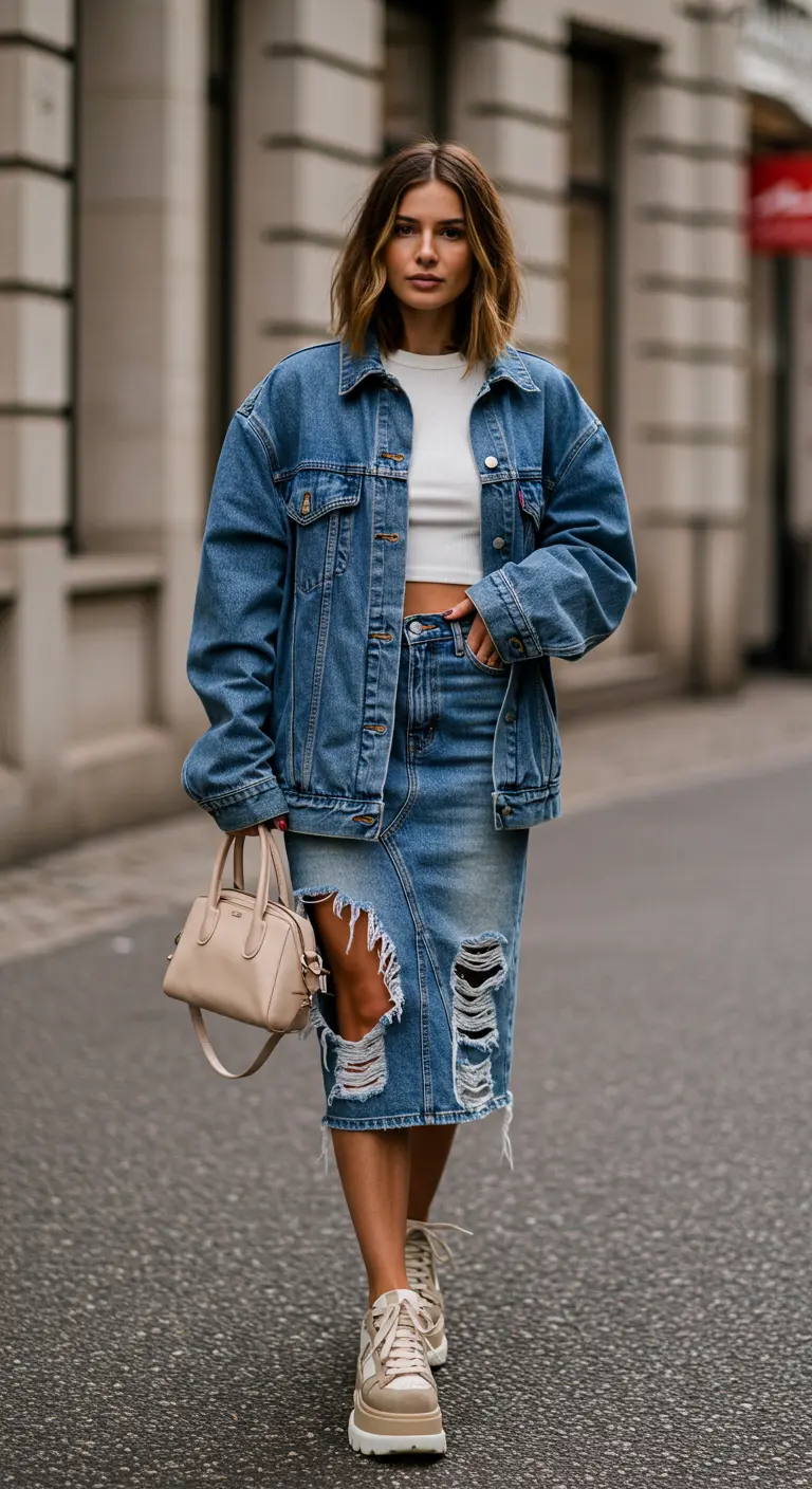 Layer with an oversized denim jacket for that perfect grunge silhouette.