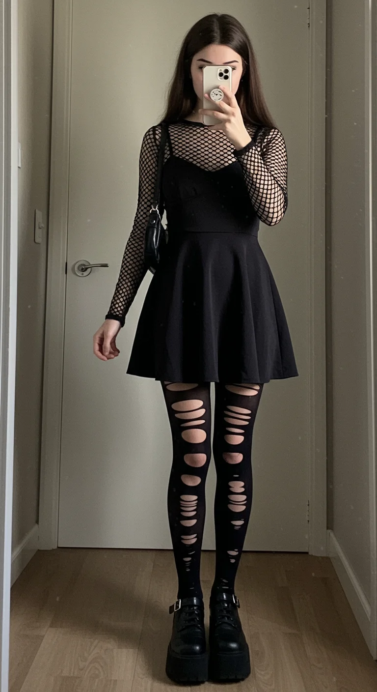 Combine sweet and edgy with a babydoll dress over fishnets.