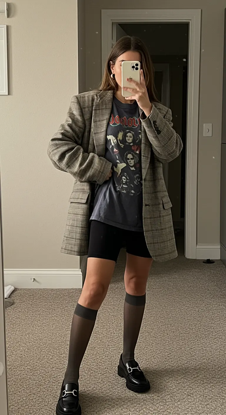 Mix tailored and casual with an oversized blazer and bike shorts.