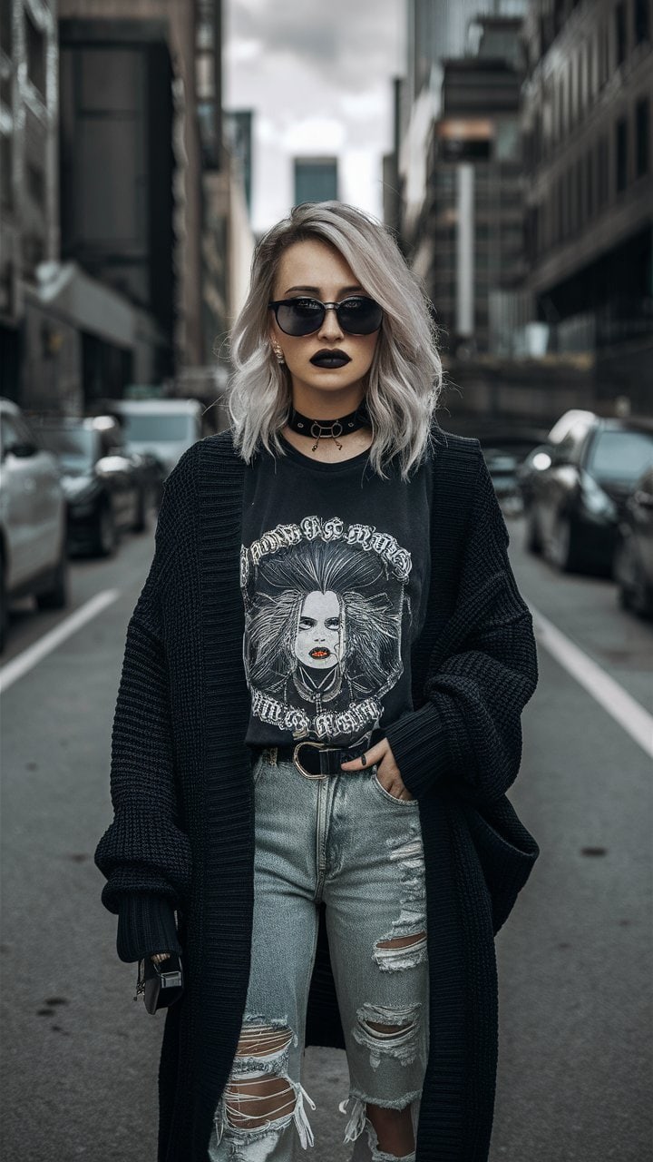 Urban Goth Chic with Oversized Cardigan