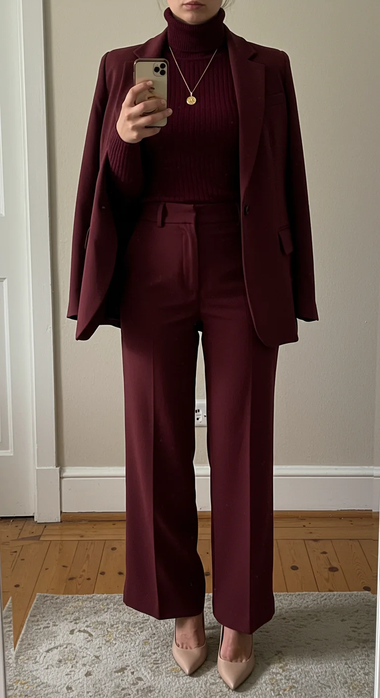 2. Monochrome Magic: Head-to-Toe Burgundy