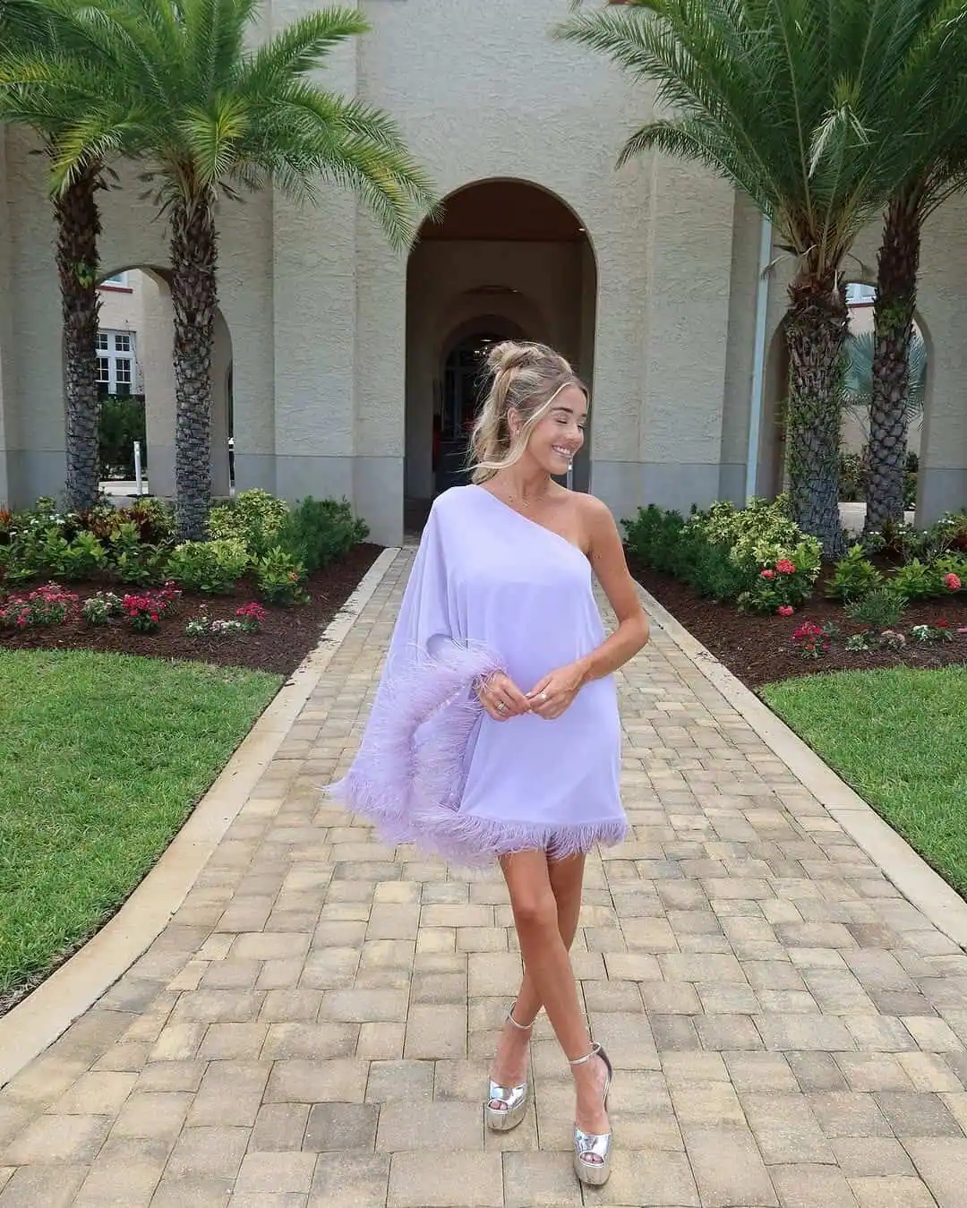 Make a statement at any birthday celebration with this eye-catching lavender one-shoulder mini dress. The soft, ethereal hue is perfect for warm-weather parties, while the asymmetrical neckline adds a touch of modern elegance.