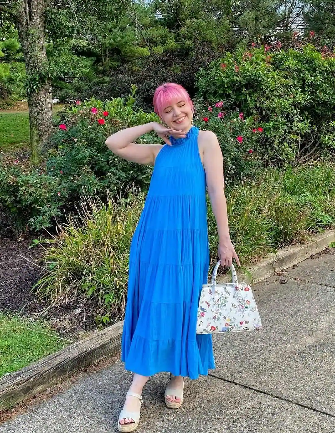 Make a bold statement at any birthday celebration with this eye-catching blue tiered maxi dress. The vibrant hue demands attention, while the flowy, tiered design offers both comfort and style.