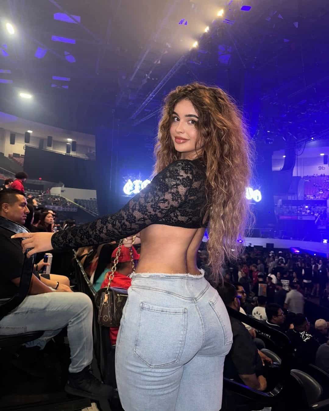 The combination creates an eye-catching silhouette thats sure to turn heads in the crowd. Paired with voluminous, tousled curls that capture the free-spirited energy of a live music event, this outfit embodies the ideal mix of style and practicality for any concert setting.