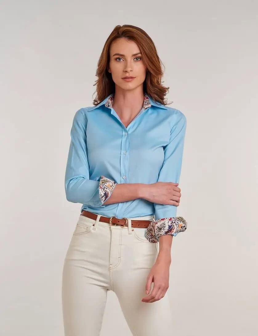Elegant Blue Shirt with Floral Accents