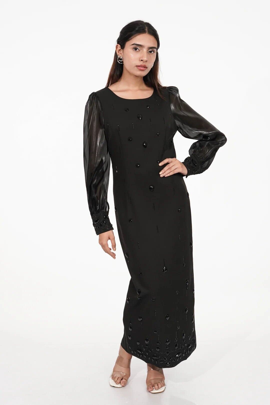 Elegant Black Maxi with Sheer Sleeves
