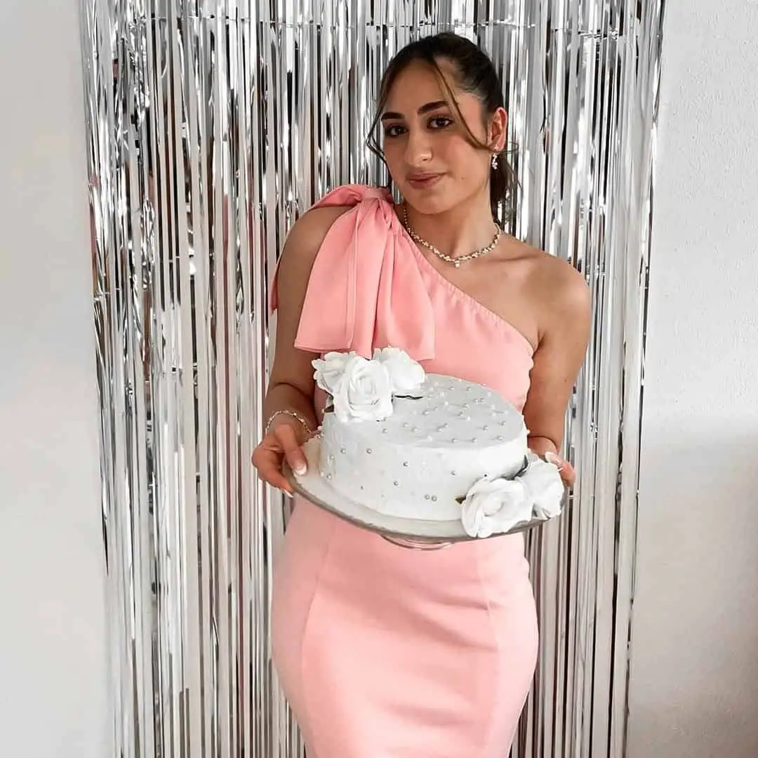 This stunning pink birthday outfit is the epitome of elegance and sophistication. The one-shoulder design adds a touch of allure, while the soft pink hue exudes femininity and charm.