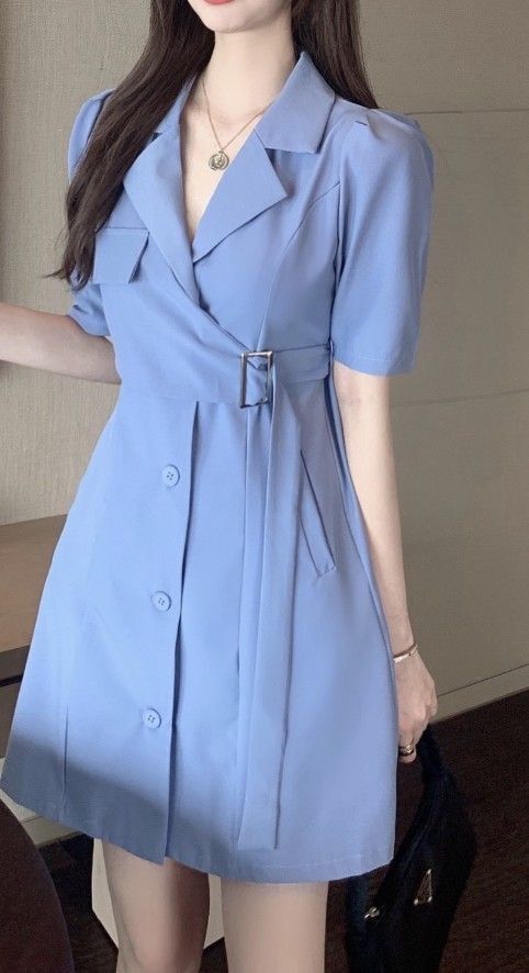 This elegant powder blue wrap dress is a perfect choice for teachers looking to make a stylish yet professional statement. The soft, calming hue exudes confidence and approachability, while the wrap style and belted waist create a flattering silhouette.