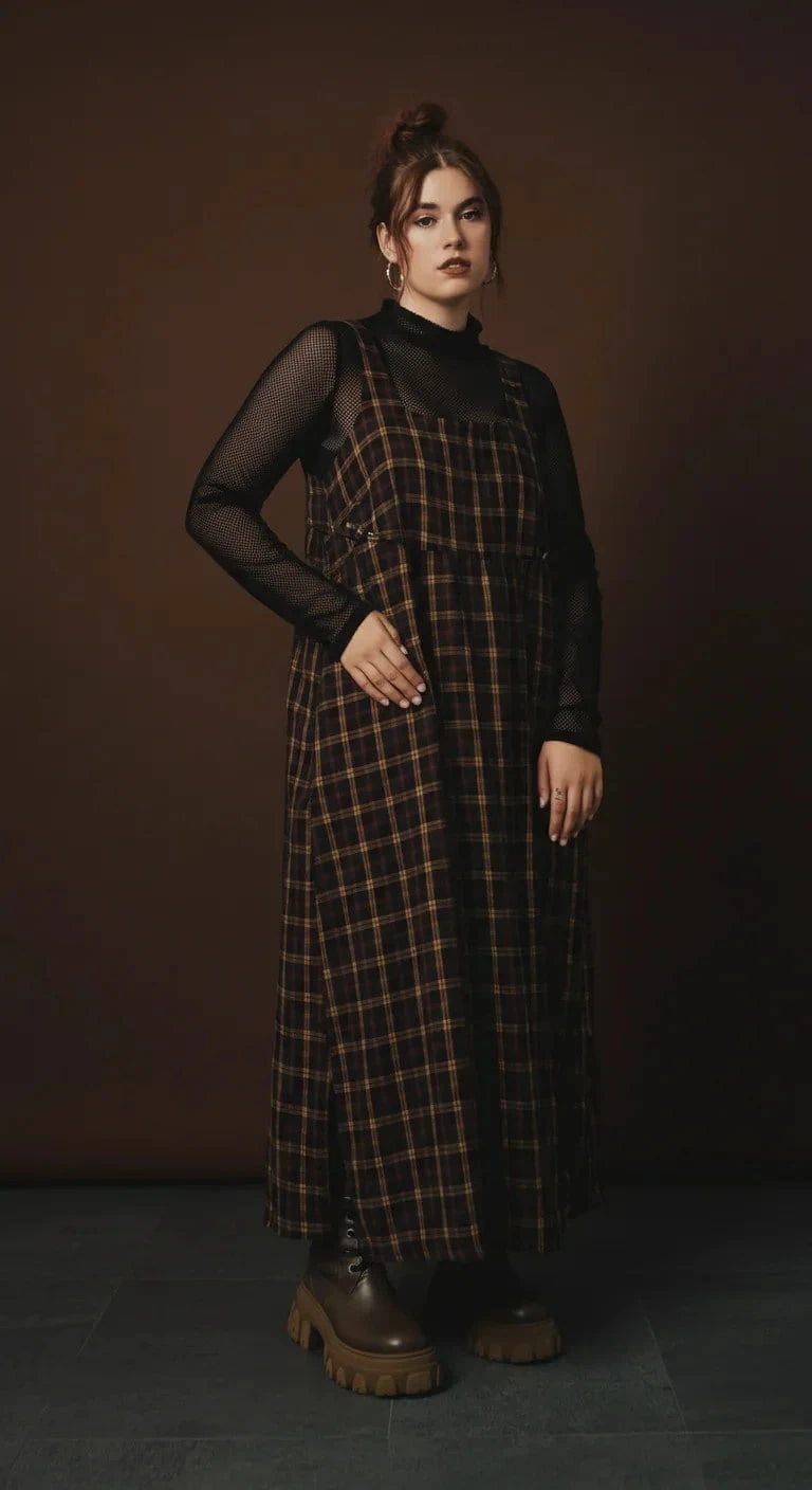 Grunge Plaid Maxi Dress Layer